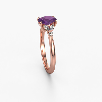 This 14 Carat rose gold ring is called Megan OVL and is set with 7,5x5,5 mm amethyst. Are you looking for a unique rose gold engagement ring which you can customize to your own liking? This unique engagement ring is set with amethyst which is carefully selected for this specific ring in order to create the best effect. Our expert goldsmith will create your ring in our own crafting studio, where the amethyst will be set with great care. The ring will then be polished till it shines perfectly. Nothing but the best for the love of your life! The great thing about our online tool is, that you can compile your own jewellery into a unique, personalized piece. Each piece of jewellery is made by a team of passionate goldsmiths and jewel designers. This will make your crown jewel truly eye-catching.By using a combination of the latest modern techniques, combined with ancient crafting, we can make all our engagement rings in our own studio. Each jewel is made to order. This is advantageous because we can offer you a price you won't find anywhere else.Different styles of new rings are made daily by our team. Perhaps you have found a pavé solitaire engagement ring somewhere. One you would like to give to your loved one. Please feel free to share your thoughts and design with our jewel designers. We would love to turn your design into a unique engagement ring. You can follow the development of your ring design because we use very detailed 3D drawings. On top of that, you can order a dummy of the design. A dummy is a plastic ring, which can be shaped according your ring design. You can try it on and check if the engagement ring is up to standard. We will gladly send you a non-binding offer, based on a fair price/ quality ratio. The offer will baffle you, considering the quality of the ring and gemstones.To make it easier for you, we offer a 30 day return policy. Check our terms and conditions.