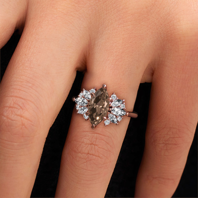 This 14 Carat rose gold ring is called Jaimie and is set with 2.344 crt brown diamond. Are you looking for a unique rose gold engagement ring which you can customize to your own liking? This unique engagement ring is set with brown diamond which is carefully selected for this specific ring in order to create the best effect. Our expert goldsmith will create your ring in our own crafting studio, where the brown diamond will be set with great care. The ring will then be polished till it shines perfectly. Nothing but the best for the love of your life! The great thing about our online tool is, that you can compile your own jewellery into a unique, personalized piece. Each piece of jewellery is made just for you by our master goldsmiths in our own studio.By using a combination of the latest modern techniques, combined with ancient crafting, we can make all our engagement rings in our own studio. Each jewel is made to order. This is advantageous because we can offer you a price you won't find anywhere else.Have you found a specific engagement ring somewhere which you would like to give to your loved one? Please feel free to express your wishes to our jewel designers because we would be honoured to turn your design into a unique engagement ring. You can follow the development of your ring design because we use 3D drawings. This gives you a realistic preview of how your design will look. You can also preorder a dummy. A dummy is a plastic ring, which can be shaped according your ring design. You can try it on and check if its width and size are suitable for you. We will gladly send you a non-binding offer, based on a fair price/ quality ratio. It will amaze you, considering the quality of the ring and gemstones.To make it easier for you, we offer a 30 day return policy. Check our terms and conditions.