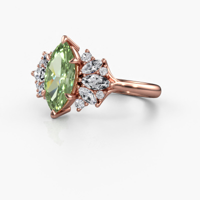 This 14 Carat rose gold ring is called Jaimie and is set with 12x6 mm green lab grown diamond. Are you looking for a unique rose gold engagement ring which you can customize to your own liking? This unique engagement ring is set with green lab grown diamond which is carefully selected for this specific ring in order to create the best effect. Our expert goldsmith will create your ring in our own crafting studio, where the green lab grown diamond will be set with great care. The ring will then be polished till it shines perfectly. Nothing but the best for the love of your life! The great thing about our online tool is, that you can compile your own jewellery into a unique, personalized piece. Each piece of jewellery is made just for you by our master goldsmiths in our own studio.By using a combination of the latest modern techniques, combined with ancient crafting, we can make all our engagement rings in our own studio. Each jewel is made to order. This is advantageous because we can offer you a price you won't find anywhere else.Have you found a specific engagement ring somewhere which you would like to give to your loved one? Please feel free to express your wishes to our jewel designers because we would be honoured to turn your design into a unique engagement ring. You can follow the development of your ring design because we use 3D drawings. This gives you a realistic preview of how your design will look. You can also preorder a dummy. A dummy is a plastic ring, which can be shaped according your ring design. You can try it on and check if its width and size are suitable for you. We will gladly send you a non-binding offer, based on a fair price/ quality ratio. It will amaze you, considering the quality of the ring and gemstones.To make it easier for you, we offer a 30 day return policy. Check our terms and conditions.