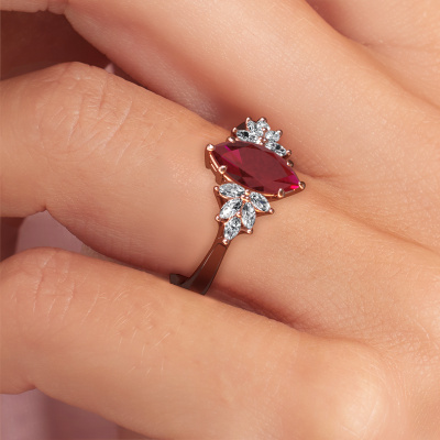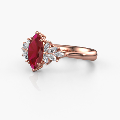 This 14 Carat rose gold ring is called Fiona MRQ and is set with 10x5 mm ruby. Are you looking for a unique rose gold engagement ring which you can customize to your own liking? This unique engagement ring is set with ruby which is carefully selected for this specific ring in order to create the best effect. Our expert goldsmith will create your ring in our own crafting studio, where the ruby will be set with great care. The ring will then be polished till it shines perfectly. Nothing but the best for the love of your life! The great thing about our online tool is, that you can compile your own jewellery into a unique, personalized piece. Each piece of jewellery is made just for you by our master goldsmiths in our own studio.By using a combination of the latest modern techniques, combined with ancient crafting, we can make all our engagement rings in our own studio. Each jewel is made to order. This is advantageous because we can offer you a price you won't find anywhere else.Our designers and goldsmiths work together each day, creating new jewels. Perhaps you have found a nice unique engagement ring somewhere, which can be used to customize your unique ring. Please feel free to contact us. We will make you an offer, based on a fair price/ quality ratio, which will amaze you.To make it easier for you, we offer a 30 day return policy. Check our terms and conditions.