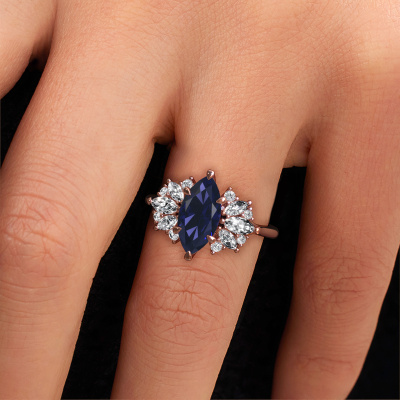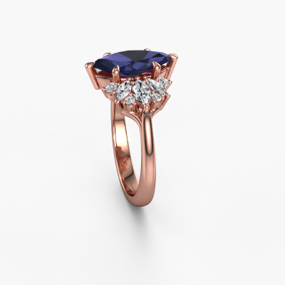 This 14 Carat rose gold ring is called Jaimie and is set with 12x6 mm sapphire. Are you looking for a unique rose gold engagement ring which you can customize to your own liking? This unique engagement ring is set with sapphire which is carefully selected for this specific ring in order to create the best effect. Our expert goldsmith will create your ring in our own crafting studio, where the sapphire will be set with great care. The ring will then be polished till it shines perfectly. Nothing but the best for the love of your life! The great thing about our online tool is, that you can compile your own jewellery into a unique, personalized piece. Each piece of jewellery is made just for you by our master goldsmiths in our own studio.By using a combination of the latest modern techniques, combined with ancient crafting, we can make all our engagement rings in our own studio. Each jewel is made to order. This is advantageous because we can offer you a price you won't find anywhere else.Have you found a specific engagement ring somewhere which you would like to give to your loved one? Please feel free to express your wishes to our jewel designers because we would be honoured to turn your design into a unique engagement ring. You can follow the development of your ring design because we use 3D drawings. This gives you a realistic preview of how your design will look. You can also preorder a dummy. A dummy is a plastic ring, which can be shaped according your ring design. You can try it on and check if its width and size are suitable for you. We will gladly send you a non-binding offer, based on a fair price/ quality ratio. It will amaze you, considering the quality of the ring and gemstones.To make it easier for you, we offer a 30 day return policy. Check our terms and conditions.