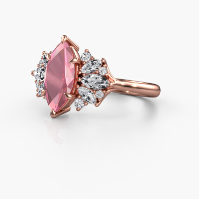 This 14 Carat rose gold ring is called Jaimie and is set with 12x6 mm tourmaline pink. Are you looking for a unique rose gold engagement ring which you can customize to your own liking? This unique engagement ring is set with tourmaline pink which is carefully selected for this specific ring in order to create the best effect. Our expert goldsmith will create your ring in our own crafting studio, where the tourmaline pink will be set with great care. The ring will then be polished till it shines perfectly. Nothing but the best for the love of your life! The great thing about our online tool is, that you can compile your own jewellery into a unique, personalized piece. Each piece of jewellery is made just for you by our master goldsmiths in our own studio.By using a combination of the latest modern techniques, combined with ancient crafting, we can make all our engagement rings in our own studio. Each jewel is made to order. This is advantageous because we can offer you a price you won't find anywhere else.Have you found a specific engagement ring somewhere which you would like to give to your loved one? Please feel free to express your wishes to our jewel designers because we would be honoured to turn your design into a unique engagement ring. You can follow the development of your ring design because we use 3D drawings. This gives you a realistic preview of how your design will look. You can also preorder a dummy. A dummy is a plastic ring, which can be shaped according your ring design. You can try it on and check if its width and size are suitable for you. We will gladly send you a non-binding offer, based on a fair price/ quality ratio. It will amaze you, considering the quality of the ring and gemstones.To make it easier for you, we offer a 30 day return policy. Check our terms and conditions.