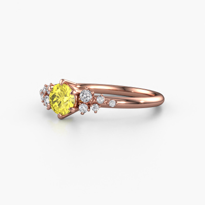 The ring shown above is called the Royce RND. We call this a solitaire ring because it contains a single gemstone. The engagement ring is made in 14 Carat rose gold and has a round yellow lab grown diamond of 5 mm. This extraordinary vintage rose gold solitaire engagement ring is set with a beautiful round yellow lab grown diamond to add sparkle to your proposal. The open prong setting allows light to strike the gemstone from various angles. Did you know a diamond represents everlasting love and fidelity? This makes it a perfect centrepiece. Our goldsmith carefully positions the gemstone of your choosing high on top of the ring, which makes it stand out. Each piece of jewellery is made by a team of passionate goldsmiths and jewel designers. This will make your crown jewel truly eye-catching.After receiving your order, our goldsmiths will passionately start the creative process of making your engagement ring in our own studio. Because we don't have a big stockpile, these costs will not be passed on to you. Our pricing is proof of that! We offer top quality jewels at lowest price, guaranteed.Do you have a specific ring in mind? One you came across somewhere. Please feel free to tell us your wishes and we will turn your design into a unique engagement ring. You can follow the development of your ring design because we use 3D drawings. This gives you a realistic preview of your design. We will gladly send you a non-binding offer, based on a fair price/ quality ratio. It will amaze you.To make it easier for you, we offer a 30 day return policy. Check our terms and conditions.
