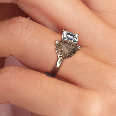 This 14 Carat white gold ring is called Toi et Moi PER-EME and is set with brown diamond. Are you in the market for a unique white gold engagement ring with a trendy appearance? Then this ring is perfect for you. Simply customize to your or her liking. This chic sparkling engagement ring is set with exquisite brown diamond. It has been carefully selected because your engagement ring must be adorned with nothing but the most beautiful gemstone. Our expert goldsmith will create your ring in our own studio where the brown diamond will be set with great care. The ring will then be polished to perfection to give it that extra sparkle. The perfect ring for your significant other! By using a combination of the latest modern techniques, combined with ancient crafting, we can make all our engagement rings in our own studio. Each jewel is made to order. This is advantageous because we can offer you a price you won't find anywhere else.Our team adds new designs to our online collection daily. Our designers and goldsmiths work together in creating the best design. We strive to offer a diverse collection of jewels. Perhaps you have a specific jewel design in mind. One you came across somewhere. Please contact us for a free consultation. We will make you an offer, based on a fair price/ quality ratio, that will baffle you.To make it easier for you, we offer a 30 day return policy. Check our terms and conditions.
