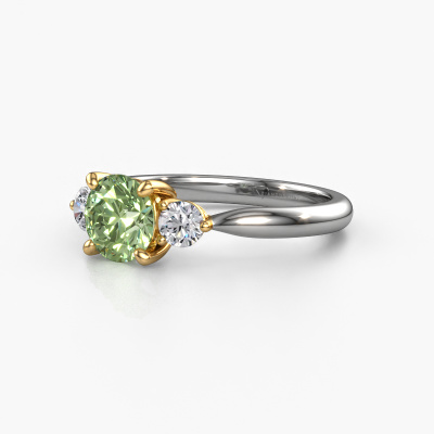This 14 Carat white gold ring is called Lieselot RND and is set with 6.5 mm green lab grown diamond. This filigree white gold engagement ring is a true work of art! A beautifully adorned design of intricate wires. With dedication, patience and the utmost precision, our expert goldsmith will design a ring just for you. The adornment of small wiring is crafted to perfection by hand. It's a lengthy process which includes welding, crafting and polishing until our Goldsmiths are completely satisfied with the result: a perfect eye-catching ring that makes her shine with delight. Therefore the fantasy filigree engagement ring is an extraordinary gift to bestow upon the love of your life. A handmade one-of-a-kind personalized ring, to be given to that special someone on that special moment when you pop the question. Isn't that wonderful? This piece of jewellery is made just for you by our master goldsmiths in our own studio.Because we design and deliver our own rings, we can offer you a engagement ring at a price you won't find anywhere else. A ring is made to order, which helps prevent excess supplies, so we can make you a great price offer. We understand it feels risky, buying your engagement ring online, but we will gladly assist in the designing process, taking your budget into consideration.Our team adds new designs to our online collection daily. Our designers and goldsmiths work together in creating the best design. We strive to offer a diverse collection of jewels. Perhaps you have a specific jewel design in mind. One you came across somewhere. Please contact us for a free consultation. We will make you an offer, based on a fair price/ quality ratio, that will baffle you.To make it easier for you, we offer a 30 day return policy. Check our terms and conditions.