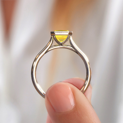 This 14 Carat white gold ring is called Lavon EME and is set with yellow sapphire. Are you in the market for a unique white gold engagement ring with a trendy appearance? Then this ring is perfect for you. Simply customize to your or her liking. This trendy fashionable engagement ring is set with exquisite yellow sapphire. It has been carefully selected because your engagement ring must be adorned with nothing but the most beautiful gemstone. Our expert goldsmith will create your ring in our own studio where the yellow sapphire will be set with great care. The ring will then be polished to perfection to give it that extra sparkle. The perfect ring for your significant other! After receiving your order, our goldsmiths will start the creative process of making your Lavon EME engagement ring. We don't keep stock. This is advantageous because these costs will not be passed on to you. Therefore, we can offer jewellery at exceptionally low prices.Our team adds new designs to our online collection daily. Our designers and goldsmiths work together in creating the best design. We strive to offer a diverse collection of jewels. Perhaps you have a specific jewel design in mind. One you came across somewhere. Please contact us for a free consultation. We will make you an offer, based on a fair price/ quality ratio, that will baffle you.To make it easier for you, we offer a 30 day return policy. Check our terms and conditions.