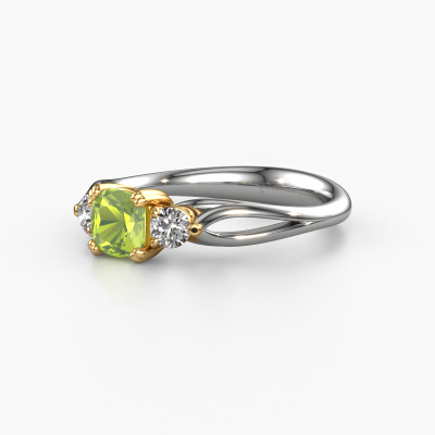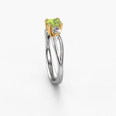 This 14 Carat white gold ring is called Amie cus and is set with 5 mm peridot. Does your girlfriend fancy exclusive jewellery? Or would you like to show her that she deserves the finest jewellery? This white gold ring is pure craftsmanship, love and passion combined with the latest techniques coming together in perfect harmony. It requires a keen eye, patience and a skilful hand to mould this ring into perfection. Just the job for our expert goldsmith! The peridot set gemstones gives this white gold ring an extra glamorous appearance. Customize the style of the ajour engagement ring to her liking with a wide variety of precious metals and gemstones which you select. That is how you create a unique ring for the most exclusive woman in your life! This jewel is made just for you, with attention to detail and design.After receiving your order, our goldsmiths will passionately start the creative process of making your engagement ring in our own studio. Because we don't have a big stockpile, these costs will not be passed on to you. Our pricing is proof of that! We offer top quality jewels at lowest price, guaranteed.Have you found a specific engagement ring somewhere which you would like to give to your loved one? Please feel free to express your wishes to our jewel designers because we would be honoured to turn your design into a fantasy engagement ring. You can follow the development of your ring design because we use 3D drawings. This gives you a realistic preview of how your design will look. You can also preorder a dummy. A dummy is a plastic ring, which can be shaped according your ring design. You can try it on and check if its width and size are suitable for you. We will gladly send you a non-binding offer, based on a fair price/ quality ratio. It will amaze you, considering the quality of the ring and gemstones.To make it easier for you, we offer a 30 day return policy. Check our terms and conditions.