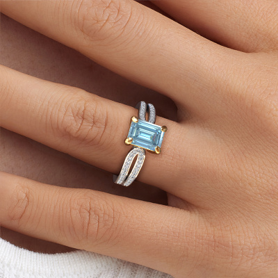 This 14 Carat white gold ring is called Antonia eme 2 and is set with 8x6 mm blue lab grown diamond. Does your girlfriend fancy exclusive jewellery? Or would you like to show her that she deserves the finest jewellery? This white gold ring is pure craftsmanship, love and passion combined with the latest techniques coming together in perfect harmony. It requires a keen eye, patience and a skilful hand to mould this ring into perfection. Just the job for our expert goldsmith! The blue lab grown diamonds set gemstones gives this white gold ring an extra glamorous appearance. Customize the style of the split band engagement ring to her liking with a wide variety of precious metals and gemstones which you select. That is how you create a unique ring for the most exclusive woman in your life! This jewel is made to shine bright around your finger. Each jewel is hand made with love by our goldsmiths.After receiving your order, our goldsmiths will start the creative process of making your Antonia eme 2 engagement ring. We don't keep stock. This is advantageous because these costs will not be passed on to you. Therefore, we can offer jewellery at exceptionally low prices.Do you have a specific ring in mind? One you came across somewhere. Please feel free to tell us your wishes and we will turn your design into a unique engagement ring. You can follow the development of your ring design because we use 3D drawings. This gives you a realistic preview of your design. We will gladly send you a non-binding offer, based on a fair price/ quality ratio. It will amaze you.To make it easier for you, we offer a 30 day return policy. Check our terms and conditions.