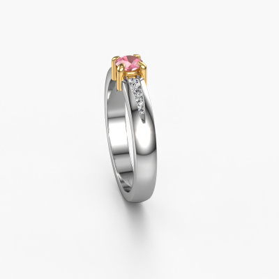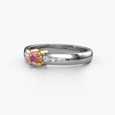 The ring shown above is called the Zohra. We call this type of ring a pavé solitaire ring because it has one centre gemstone and a band that is also pave set with gemstones. The 14 Carat white gold engagement ring is set with a round 4 mm tourmaline pink centre stone and the band is pave set with diamond gemstones. Each jewel is made just for you by our master goldsmiths in our own studio.This modern white gold pavé solitaire engagement ring has an exquisite round tourmaline pink centre stone. To further accentuate the centre stone, the band is fully set with more diamonds. Its open prong setting allows light to strike the tourmaline pink from various angles and this adds sparkle to your tourmaline pink ring. The photo shown above depicts the goldsmith's carefully handcrafted details of the ring. The high positioning of the centre stone is truly eye-catching. The perfect engagement ring for the crown jewel of your life! Because we design and deliver our own rings, we can offer you a engagement ring at a price you won't find anywhere else. A ring is made to order, which helps prevent excess supplies, so we can make you a great price offer. We understand it feels risky, buying your engagement ring online, but we will gladly assist in the designing process, taking your budget into consideration.Our team adds new designs to our online collection daily. Our designers and goldsmiths work together in creating the best design. We strive to offer a diverse collection of jewels. Perhaps you have a specific jewel design in mind. One you came across somewhere. Please contact us for a free consultation. We will make you an offer, based on a fair price/ quality ratio, that will baffle you.To make it easier for you, we offer a 30 day return policy. Check our terms and conditions.