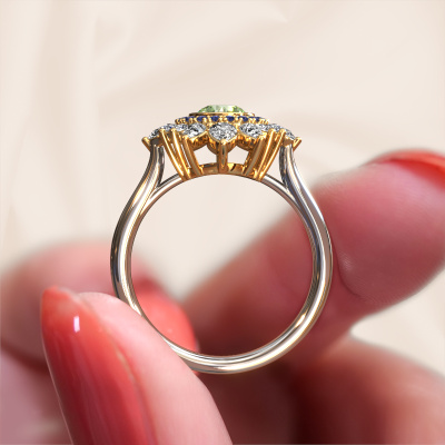 This 14 Carat white gold ring is called Tianna and is set with green lab grown diamond. An extraordinary white gold vintage ring. One that will surely make the love of your life shine like a diamond! That is what we hope to achieve. This vintage engagement ring is set with exquisite green lab grown diamonds. Whichever gemstone you choose from our selection, is up to you. The gemstone is selected with great care because we believe your engagement ring must be adorned with nothing but the most beautiful gemstone. Wouldn't you agree? Our expert goldsmith will design your ring in our own artisan studio, where the green lab grown diamond will be set with great precision. The ring will then be polished till it is absolutely perfect. Nothing but the best for the love of your life! This jewel is made just for you by our master goldsmiths in our own studio.Because we design and deliver our own rings, we can offer you a engagement ring at a price you won't find anywhere else. A ring is made to order, which helps prevent excess supplies, so we can make you a great price offer. We understand it feels risky, buying your engagement ring online, but we will gladly assist in the designing process, taking your budget into consideration.Our team adds new designs to our online collection daily. Our designers and goldsmiths work together in creating the best design. We strive to offer a diverse collection of jewels. Perhaps you have a specific jewel design in mind. One you came across somewhere. Please contact us for a free consultation. We will make you an offer, based on a fair price/ quality ratio, that will baffle you.To make it easier for you, we offer a 30 day return policy. Check our terms and conditions.