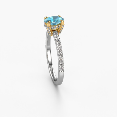 This 14 Carat white gold ring is called Saskia 1 ovl and is set with 7x5 mm blue topaz. Does your girlfriend fancy exclusive jewellery? Or would you like to show her that she deserves the finest jewellery? This white gold ring is pure craftsmanship, love and passion combined with the latest techniques coming together in perfect harmony. It requires a keen eye, patience and a skilful hand to mould this ring into perfection. Just the job for our expert goldsmith! The blue topaz set gemstones gives this white gold ring an extra glamorous appearance. Customize the style of the daring engagement ring to her liking with a wide variety of precious metals and gemstones which you select. That is how you create a unique ring for the most exclusive woman in your life! This jewel is made by a team of passionate goldsmiths and jewel designers. This will make your crown jewel truly eye-catching.After receiving your order, our goldsmiths will passionately start the creative process of making your engagement ring in our own studio. Because we don't have a big stockpile, these costs will not be passed on to you. Our pricing is proof of that! We offer top quality jewels at lowest price, guaranteed.Different styles of new rings are made daily by our team. Perhaps you have found a pavé solitaire engagement ring somewhere. One you would like to give to your loved one. Please feel free to share your thoughts and design with our jewel designers. We would love to turn your design into a luxury engagement ring. You can follow the development of your ring design because we use very detailed 3D drawings. On top of that, you can order a dummy of the design. A dummy is a plastic ring, which can be shaped according your ring design. You can try it on and check if the engagement ring is up to standard. We will gladly send you a non-binding offer, based on a fair price/ quality ratio. The offer will baffle you, considering the quality of the ring and gemstones.To make it easier for you, we offer a 30 day return policy. Check our terms and conditions.