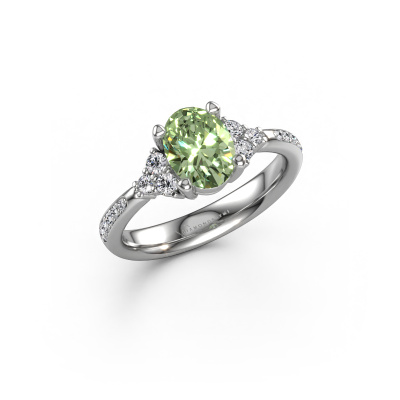 This 14 Carat white gold ring is called Aleida OVL 2 and is set with 8x6 mm green lab grown diamond. Does your girlfriend fancy exclusive jewellery? Or would you like to show her that she deserves the finest jewellery? This white gold ring is pure craftsmanship, love and passion combined with the latest techniques coming together in perfect harmony. It requires a keen eye, patience and a skilful hand to mould this ring into perfection. Just the job for our expert goldsmith! The green lab grown diamonds set gemstones gives this white gold ring an extra glamorous appearance. Customize the style of the charming engagement ring to her liking with a wide variety of precious metals and gemstones which you select. That is how you create a unique ring for the most exclusive woman in your life! This jewel is made just for you by our master goldsmiths in our own studio.By using a combination of the latest modern techniques, combined with ancient crafting, we can make all our engagement rings in our own studio. Each jewel is made to order. This is advantageous because we can offer you a price you won't find anywhere else.Do you have a specific ring in mind? One you came across somewhere. Please feel free to tell us your wishes and we will turn your design into a unique engagement ring. You can follow the development of your ring design because we use 3D drawings. This gives you a realistic preview of your design. We will gladly send you a non-binding offer, based on a fair price/ quality ratio. It will amaze you.To make it easier for you, we offer a 30 day return policy. Check our terms and conditions.