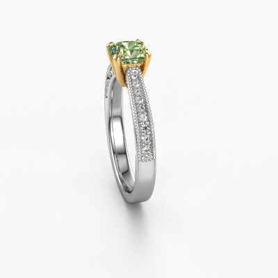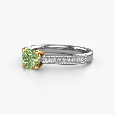This 14 Carat white gold ring is called Shonta CUS and is set with 5.5 mm green lab grown diamond. This filigree white gold engagement ring is a true work of art! A beautifully adorned design of intricate wires. With dedication, patience and the utmost precision, our expert goldsmith will design a ring just for you. The adornment of small wiring is crafted to perfection by hand. It's a lengthy process which includes welding, crafting and polishing until our Goldsmiths are completely satisfied with the result: a perfect eye-catching ring that makes her shine with delight. Therefore the vintage filigree engagement ring is an extraordinary gift to bestow upon the love of your life. A handmade one-of-a-kind personalized ring, to be given to that special someone on that special moment when you pop the question. Isn't that wonderful? This piece of jewellery is created to add sparkle to your finger, each jewel is lovingly made by hand by our goldsmiths.After receiving your order, our goldsmiths will start the creative process of making your Shonta CUS engagement ring. We don't keep stock. This is advantageous because these costs will not be passed on to you. Therefore, we can offer jewellery at exceptionally low prices.Our designers and goldsmiths work together each day, creating new jewels. Perhaps you have found a nice vintage engagement ring somewhere, which can be used to customize your unique ring. Please feel free to contact us. We will make you an offer, based on a fair price/ quality ratio, which will amaze you.To make it easier for you, we offer a 30 day return policy. Check our terms and conditions.