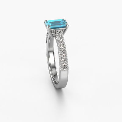 This 14 Carat white gold ring is called Shonta EME and is set with blue topaz. An extraordinary white gold vintage ring. One that will surely make the love of your life shine like a diamond! That is what we hope to achieve. This vintage engagement ring is set with exquisite blue topaz. Whichever gemstone you choose from our selection, is up to you. The gemstone is selected with great care because we believe your engagement ring must be adorned with nothing but the most beautiful gemstone. Wouldn't you agree? Our expert goldsmith will design your ring in our own artisan studio, where the blue topaz will be set with great precision. The ring will then be polished till it is absolutely perfect. Nothing but the best for the love of your life! This jewel is made by a team of passionate goldsmiths and jewel designers. This will make your crown jewel truly eye-catching.Are you on a budget? Please feel free to contact us, so we can go discuss your options. We offer our engagement rings at guaranteed best price, because we make them to order. You won't find such a price anywhere else!Have you found a specific engagement ring somewhere which you would like to give to your loved one? Please feel free to express your wishes to our jewel designers because we would be honoured to turn your design into a vintage engagement ring. You can follow the development of your ring design because we use 3D drawings. This gives you a realistic preview of how your design will look. You can also preorder a dummy. A dummy is a plastic ring, which can be shaped according your ring design. You can try it on and check if its width and size are suitable for you. We will gladly send you a non-binding offer, based on a fair price/ quality ratio. It will amaze you, considering the quality of the ring and gemstones.To make it easier for you, we offer a 30 day return policy. Check our terms and conditions.