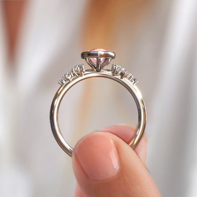 This 14 Carat white gold ring is called Aliyah PER and is set with pink lab grown diamond. Are you in the market for a unique white gold engagement ring with a trendy appearance? Then this ring is perfect for you. Simply customize to your or her liking. This trendy beautiful engagement ring is set with exquisite pink lab grown diamond. It has been carefully selected because your engagement ring must be adorned with nothing but the most beautiful gemstone. Our expert goldsmith will create your ring in our own studio where the pink lab grown diamond will be set with great care. The ring will then be polished to perfection to give it that extra sparkle. The perfect ring for your significant other! By using our modern techniques, we can design and customize the finest quality jewels with the utmost care for you. Our engagement rings are always priced 30 percent lower than other jewellers. We make engagement rings to order so we don't have to maintain a large stock. If you have a certain budget, we are more than happy to advice you accordingly.Our team adds new designs to our online collection daily. Our designers and goldsmiths work together in creating the best design. We strive to offer a diverse collection of jewels. Perhaps you have a specific jewel design in mind. One you came across somewhere. Please contact us for a free consultation. We will make you an offer, based on a fair price/ quality ratio, that will baffle you.To make it easier for you, we offer a 30 day return policy. Check our terms and conditions.
