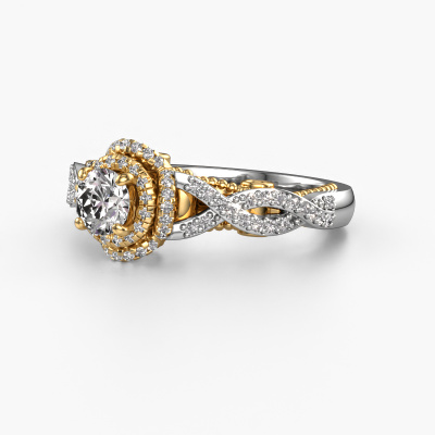 The ring shown above is called the Leora. We call this type of ring a halo ring because it has one centre gemstone and a band that is also pave set with gemstones. The 14 Carat white gold engagement ring is set with a round 0.40 crt diamond centre stone and the band is pave set with lab-grown diamonds. What makes this vintage white gold halo ring special are the smaller sized stones embracing the centre stone. This gorgeous engagement ring is called a halo ring because the smaller gemstones give the centre stone a halo of surrounding light. In order for the smaller stones to enhance the centre stone, they have to be placed so there is no interference of light. And that's when our expert goldsmiths come in. Each individual stone is carefully set in the ring by hand. During manufacturing, light fall is constantly monitored to make sure the special halo is still visible. In the end you get a unique engagement ring, with a diamond of your choosing at its centre. You can imagine the effect of a ring of such significance when you give it to her on her special day to shine. By using our modern techniques, we can design and customize the finest quality jewels with the utmost care for you. Our engagement rings are always priced 30 percent lower than other jewellers. We make engagement rings to order so we don't have to maintain a large stock. If you have a certain budget, we are more than happy to advice you accordingly.Our designers and goldsmiths work together each day, creating new jewels. Perhaps you have found a nice vintage engagement ring somewhere, which can be used to customize your unique ring. Please feel free to contact us. We will make you an offer, based on a fair price/ quality ratio, which will amaze you.To make it easier for you, we offer a 30 day return policy. Check our terms and conditions.