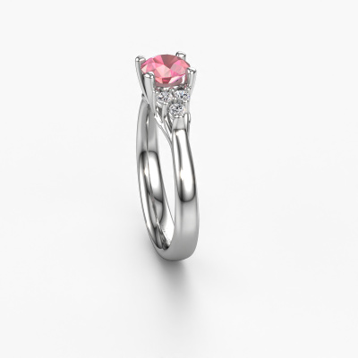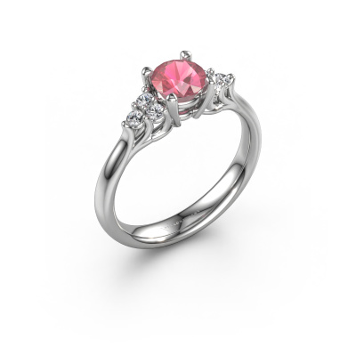 This 14 Carat white gold ring is called Monika RND and is set with 5.5 mm tourmaline pink. Does your girlfriend fancy exclusive jewellery? Or would you like to show her that she deserves the finest jewellery? This white gold ring is pure craftsmanship, love and passion combined with the latest techniques coming together in perfect harmony. It requires a keen eye, patience and a skilful hand to mould this ring into perfection. Just the job for our expert goldsmith! The tourmaline pink set gemstones gives this white gold ring an extra glamorous appearance. Customize the style of the ajour engagement ring to her liking with a wide variety of precious metals and gemstones which you select. That is how you create a unique ring for the most exclusive woman in your life! This jewel is made with passion and love by one of our master goldsmiths.Are you on a budget? Please feel free to contact us, so we can go discuss your options. We offer our engagement rings at guaranteed best price, because we make them to order. You won't find such a price anywhere else!Have you found a specific engagement ring somewhere which you would like to give to your loved one? Please feel free to express your wishes to our jewel designers because we would be honoured to turn your design into a classic engagement ring. You can follow the development of your ring design because we use 3D drawings. This gives you a realistic preview of how your design will look. You can also preorder a dummy. A dummy is a plastic ring, which can be shaped according your ring design. You can try it on and check if its width and size are suitable for you. We will gladly send you a non-binding offer, based on a fair price/ quality ratio. It will amaze you, considering the quality of the ring and gemstones.To make it easier for you, we offer a 30 day return policy. Check our terms and conditions.
