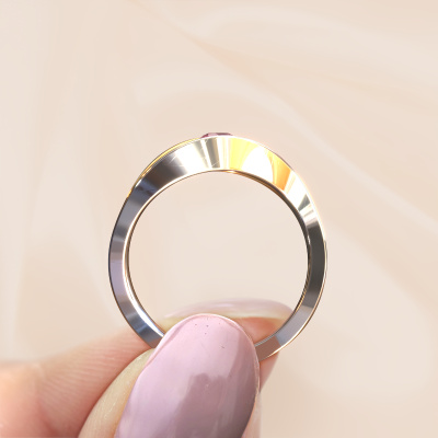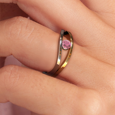 This 14 Carat white gold ring is called Sigrid 1 and is set with 3.7 mm tourmaline pink. This design white gold engagement ring is a true masterpiece! Our expert goldsmith uses special techniques during crafting of this tension set ring to make sure the tourmaline pink of this white gold ring is fixed properly. The effect is that light fall reflects beautifully on the gemstone, which gives the ring its maximum shine and glamorous appearance. The result is a unique ring, with a trendy appearance, passionately handcrafted to perfection by our artisan goldsmith. A one-of-a-kind ring, designed for the love of your life! This jewel is made to shine bright around your finger. Each jewel is hand made with love by our goldsmiths.By using our modern techniques, we can design and customize the finest quality jewels with the utmost care for you. Our engagement rings are always priced 30 percent lower than other jewellers. We make engagement rings to order so we don't have to maintain a large stock. If you have a certain budget, we are more than happy to advice you accordingly.Different styles of new rings are made daily by our team. Perhaps you have found a solitaire engagement ring somewhere. One you would like to give to your loved one. Please feel free to share your thoughts and design with our jewel designers. We would love to turn your design into a design engagement ring. You can follow the development of your ring design because we use very detailed 3D drawings. On top of that, you can order a dummy of the design. A dummy is a plastic ring, which can be shaped according your ring design. You can try it on and check if the engagement ring is up to standard. We will gladly send you a non-binding offer, based on a fair price/ quality ratio. The offer will baffle you, considering the quality of the ring and gemstones.To make it easier for you, we offer a 30 day return policy. Check our terms and conditions.