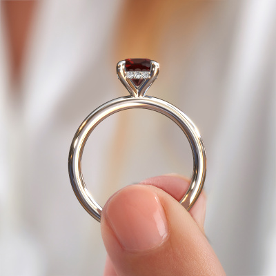 This 14 Carat white gold ring is called Simone CUS 2 and is set with garnet. Are you in the market for a unique white gold engagement ring with a trendy appearance? Then this ring is perfect for you. Simply customize to your or her liking. This unique graceful engagement ring is set with exquisite garnet. It has been carefully selected because your engagement ring must be adorned with nothing but the most beautiful gemstone. Our expert goldsmith will create your ring in our own studio where the garnet will be set with great care. The ring will then be polished to perfection to give it that extra sparkle. The perfect ring for your significant other! By using a combination of the latest modern techniques, combined with ancient crafting, we can make all our engagement rings in our own studio. Each jewel is made to order. This is advantageous because we can offer you a price you won't find anywhere else.Our team adds new designs to our online collection daily. Our designers and goldsmiths work together in creating the best design. We strive to offer a diverse collection of jewels. Perhaps you have a specific jewel design in mind. One you came across somewhere. Please contact us for a free consultation. We will make you an offer, based on a fair price/ quality ratio, that will baffle you.To make it easier for you, we offer a 30 day return policy. Check our terms and conditions.