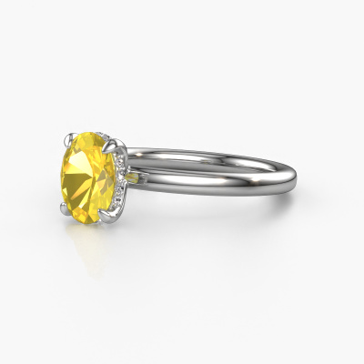 This 14 Carat white gold ring is called Simone OVL 2 and is set with yellow sapphire. Are you in the market for a unique white gold engagement ring with a trendy appearance? Then this ring is perfect for you. Simply customize to your or her liking. This contemporary graceful engagement ring is set with exquisite yellow sapphire. It has been carefully selected because your engagement ring must be adorned with nothing but the most beautiful gemstone. Our expert goldsmith will create your ring in our own studio where the yellow sapphire will be set with great care. The ring will then be polished to perfection to give it that extra sparkle. The perfect ring for your significant other! Because we design and deliver our own rings, we can offer you a engagement ring at a price you won't find anywhere else. A ring is made to order, which helps prevent excess supplies, so we can make you a great price offer. We understand it feels risky, buying your engagement ring online, but we will gladly assist in the designing process, taking your budget into consideration.Do you have a specific ring in mind? One you came across somewhere. Please feel free to tell us your wishes and we will turn your design into a unique engagement ring. You can follow the development of your ring design because we use 3D drawings. This gives you a realistic preview of your design. We will gladly send you a non-binding offer, based on a fair price/ quality ratio. It will amaze you.To make it easier for you, we offer a 30 day return policy. Check our terms and conditions.