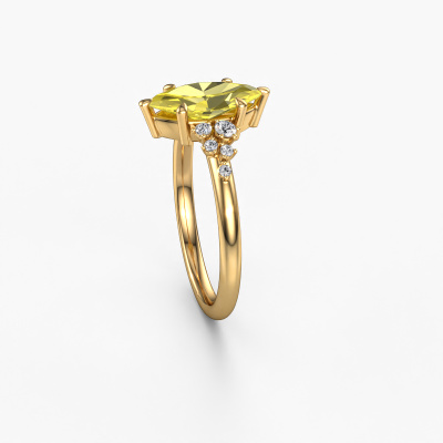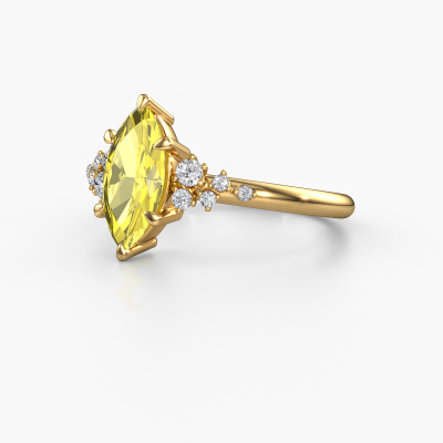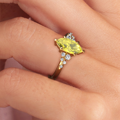 The ring shown above is called the Royce MRQ. We call this type of ring a pavé solitaire ring because it has one centre gemstone and a band that is also pave set with gemstones. This engagement ring is made in 14 Carat gold set with a 11x5.5 mm marquise yellow lab grown diamond, and pave set lab-grown diamonds at the sides. Each piece of jewellery is made with passion and love by one of our master goldsmiths.This contemporary gold pavé solitaire engagement ring has an exquisite marquise yellow lab grown diamond centre stone. To further accentuate the centre stone, the band is set full with more lab-grown diamonds. Its open prong setting allows light to strike the yellow lab grown diamond from various angles and this adds sparkle to your yellow lab grown diamond ring. The photo shown above depicts the goldsmith's carefully handcrafted details of the ring. The high positioning of the centre stone is truly eye-catching. The perfect engagement ring for the crown jewel of your life!By using a combination of the latest modern techniques, combined with ancient crafting, we can make all our engagement rings in our own studio. Each jewel is made to order. This is advantageous because we can offer you a price you won't find anywhere else.Our team adds new designs to our online collection daily. Our designers and goldsmiths work together in creating the best design. We strive to offer a diverse collection of jewels. Perhaps you have a specific jewel design in mind. One you came across somewhere. Please contact us for a free consultation. We will make you an offer, based on a fair price/ quality ratio, that will baffle you.To make it easier for you, we offer a 30 day return policy. Check our terms and conditions.
