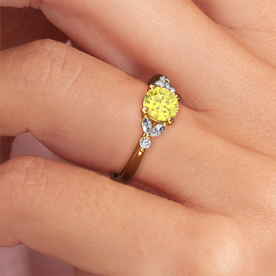 This 14 Carat gold ring is called Megan RND and is set with yellow lab grown diamond. How would you describe the style of the love of your life? Does she have a unique sense of style? This stunning sparkling gold engagement ring can be custom-made to your own or her liking. Our yellow lab grown diamonds gemstones have been carefully selected because we believe your fantasy engagement ring must be adorned with nothing but the most beautiful gemstone. Don't you agree? This jewel is made just for you by our master goldsmiths in our own studio.By using our modern techniques, we can design and customize the finest quality jewels with the utmost care for you. Our engagement rings are always priced 30 percent lower than other jewellers. We make engagement rings to order so we don't have to maintain a large stock. If you have a certain budget, we are more than happy to advice you accordingly.Our team adds new designs to our online collection daily. Our designers and goldsmiths work together in creating the best design. We strive to offer a diverse collection of jewels. Perhaps you have a specific jewel design in mind. One you came across somewhere. Please contact us for a free consultation. We will make you an offer, based on a fair price/ quality ratio, that will baffle you.To make it easier for you, we offer a 30 day return policy. Check our terms and conditions.
