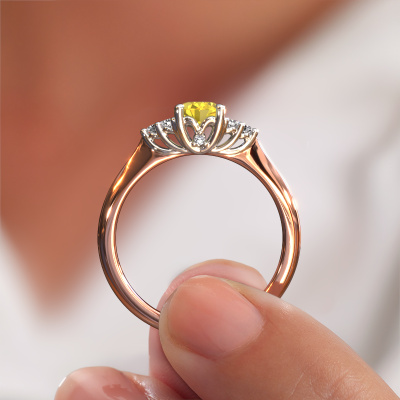 This 14 Carat rose gold ring is called Felipa OVL and is set with yellow sapphire. How would you describe the style of the love of your life? Does she have a unique sense of style? This stunning graceful rose gold engagement ring can be custom-made to your own or her liking. Our yellow sapphire gemstones have been carefully selected because we believe your traditional engagement ring must be adorned with nothing but the most beautiful gemstone. Don't you agree? This jewel is made just for you by our master goldsmiths in our own studio.By using our modern techniques, we can design and customize the finest quality jewels with the utmost care for you. Our engagement rings are always priced 30 percent lower than other jewellers. We make engagement rings to order so we don't have to maintain a large stock. If you have a certain budget, we are more than happy to advice you accordingly.Have you found a specific engagement ring somewhere which you would like to give to your loved one? Please feel free to express your wishes to our jewel designers because we would be honoured to turn your design into a traditional engagement ring. You can follow the development of your ring design because we use 3D drawings. This gives you a realistic preview of how your design will look. You can also preorder a dummy. A dummy is a plastic ring, which can be shaped according your ring design. You can try it on and check if its width and size are suitable for you. We will gladly send you a non-binding offer, based on a fair price/ quality ratio. It will amaze you, considering the quality of the ring and gemstones.To make it easier for you, we offer a 30 day return policy. Check our terms and conditions.