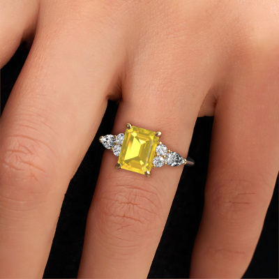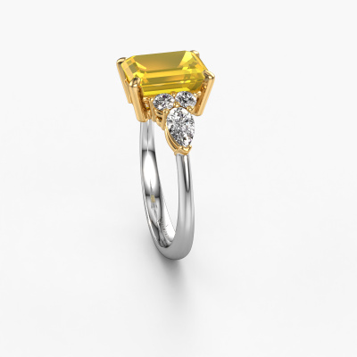 This 14 Carat white gold ring is called Melani EME and is set with yellow sapphire. How would you describe the style of the love of your life? Does she have a unique sense of style? This stunning sublime white gold promise ring can be custom-made to your own or her liking. Our yellow sapphire gemstones have been carefully selected because we believe your contemporary promise ring must be adorned with nothing but the most beautiful gemstone. Don't you agree? This jewel is made just for you, with attention to detail and design.Are you on a budget? Please feel free to contact us, so we can go discuss your options. We offer our promise ring at guaranteed best price, because we make them to order. You won't find such a price anywhere else!Do you have a specific ring in mind? One you came across somewhere. Please feel free to tell us your wishes and we will turn your design into a unique promise ring. You can follow the development of your ring design because we use 3D drawings. This gives you a realistic preview of your design. We will gladly send you a non-binding offer, based on a fair price/ quality ratio. It will amaze you.To make it easier for you, we offer a 30 day return policy. Check our terms and conditions.