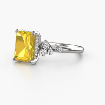 This platinum ring is called Emma RAD and is set with 9x7 mm yellow sapphire. What is it that makes your relationship unique? What is it about her that makes you want to bend down on one knee? The unique bond between the two of you is emphasized by an equally unique ring. A one of a kind stylish pavé solitaire engagement ring made especially for her. That is why this exclusive ring fits her like a glove. Each specific detail of this stylish platinum yellow sapphire set engagement ring is hand-picked, crafted and polished by our expert goldsmith. The result is an exquisite ring, unique and perfectly crafted to perfection. That is what our expert Goldsmiths strive for. This jewel is made by a team of passionate goldsmiths and jewel designers. This will make your crown jewel truly eye-catching.Because we design and deliver our own rings, we can offer you a engagement ring at a price you won't find anywhere else. A ring is made to order, which helps prevent excess supplies, so we can make you a great price offer. We understand it feels risky, buying your engagement ring online, but we will gladly assist in the designing process, taking your budget into consideration.Our designers and goldsmiths work together each day, creating new jewels. Perhaps you have found a nice exclusive engagement ring somewhere, which can be used to customize your unique ring. Please feel free to contact us. We will make you an offer, based on a fair price/ quality ratio, which will amaze you.To make it easier for you, we offer a 30 day return policy. Check our terms and conditions.