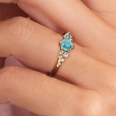| Center steen | Blauw topaas, Rond, 1 x 4.7 mm, Cert. DBM | |