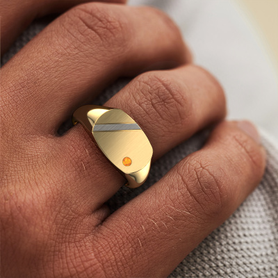 Dress to impress with this 2 Colours Bram 2 men's ring, because with the right ring you make a strong personal statement. This Bram 2 mat men's ring is shown in 14 Carat gold. If this doesn't suit your style, feel free to customize the precious metal to your liking. After all, you want a men's ring that matches your style. A ring that truly suits you. One saying: This is who I am!The best part of this matted signet ring is that you can customize it to your own liking. Your style, your choice, your signet ring. On top of that, your modern gold signet ring will be made by hand with eco-friendly materials! Please feel free to easily customize the ring, using our online tool. Of course, you can always contact us. We will gladly help you compiling your modern signet ring. Is there a design you like, but you would like to customize it with a gemstone we do not offer on our website, then please contact us. We're happy to tell you about the possibilities.New jewellery designs are added to our online collection daily. Our team of passionate designers strive to create extraordinary and diverse designs. Have you seen a ring you like? Please feel free to contact us. Based on a good price/ quality ratio, we will make you an offer you can't refuse!By using our modern techniques, we can design and customize the finest quality jewels with the utmost care for you. Our rings are always priced 30 percent lower than other jewellers. We make rings to order, so we don't have to maintain a large stock. If you have a certain budget, we are more than happy to advice you accordingly.To make it easier for you, we offer a 30 day return policy. Check our terms and conditions.
