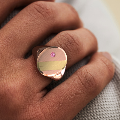 Dress to impress with this 2 Colours Wesley 4 signet ring, because with the right ring you make a strong personal statement. This Wesley 4 edgy signet ring is shown in 14 Carat rose gold. If this doesn't suit your style, feel free to customize the precious metal to your liking. After all, you want a signet ring that matches your style. A ring that truly suits you. One saying: This is who I am!The best part of this edgy signet ring is that you can customize it to your own liking. Your style, your choice, your signet ring. On top of that, your classic rose gold signet ring will be made by hand with eco-friendly materials! Please feel free to easily customize the ring, using our online tool. Of course, you can always contact us. We will gladly help you compiling your classic signet ring. Is there a design you like, but you would like to customize it with a gemstone we do not offer on our website, then please contact us. We're happy to tell you about the possibilities.New jewellery designs are added to our online collection daily. Our team of passionate designers strive to create extraordinary and diverse designs. Have you seen a ring you like? Please feel free to contact us. Based on a good price/ quality ratio, we will make you an offer you can't refuse!By using our modern techniques, we can design and customize the finest quality jewels with the utmost care for you. Our rings are always priced 30 percent lower than other jewellers. We make rings to order, so we don't have to maintain a large stock. If you have a certain budget, we are more than happy to advice you accordingly.To make it easier for you, we offer a 30 day return policy. Check our terms and conditions.
