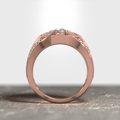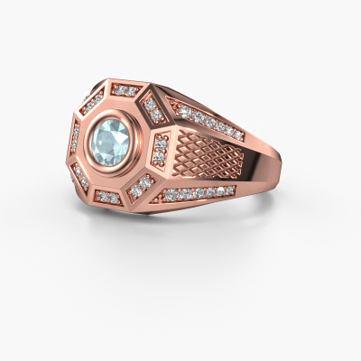 Are you looking for a modern rose gold men's ring that is slightly different? Then our heavy rose gold aquamarine set Enzo men's ring is the perfect ring for you! This ring, as shown here, is made of rose gold but feel free to customize to your liking. Show them what you are all about with this rose gold aquamarine Enzo men's ring, a ring for ambitious men. Customize your own special Enzo men's ring, which will then be created by our goldsmiths with great passion. Do you prefer a different option than is shown here in the rose gold Enzo men's ring? Then our online tools offers various options. Feel free to ask us for help if you are unable to succeed. We are happy to answer your questions!Our team of talented, passionate designers add new ring designs to our online collection daily. Our objective in doing so, is to be able to offer you a wide variety of jewels. Please feel free to request a quote if you have specific wishes for your ring. We guarantee to make you an offer you can't refuse.After receiving your order, our goldsmiths will start the creative process of making your Enzo ring. We don't keep stock. This is advantageous because these costs will not be passed on to you. Therefore, we can offer jewellery at exceptionally low prices.To make it easier for you, we offer a 30 day return policy. Check our terms and conditions.