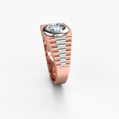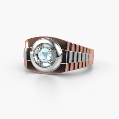 Everyone knows the design of this well-known watch brand. With two colours of rose gold links, this solid 14 Carat rose gold Edward men's ring, is perfectly suited for trendy, successful men. A man who wants to dress to impress with a striking men's ring with 4.7 mm aquamarine. Show them what you are made of!How do you like this exclusive rose gold men's ring? Simply customize this Edward men's ring, using our online tool. Subsequently, your personal daring Edward men's ring will be made by hand by our goldsmiths. Precious metals and gemstones can be customized to your liking. Do you have specific preferences which are unavailable in our online tool? Please feel free to contact us. We will customize your personal exclusive men's ring to your liking.Our talented designers add new designs to our online collection daily. Together they create a diverse collection of the finest jewellery. If you prefer to make a ring according your own design, please feel free to request a quote. We will make you an amazing offer, based on quality and price.Because we design and deliver our own rings, we can offer you a ring at a price you won't find anywhere else. A ring is made to order, which helps prevent excess supplies, so we can make you a great price offer. We understand it feels risky, buying your ring online, but we will gladly assist in the designing process, taking your budget into consideration.To make it easier for you, we offer a 30 day return policy. Check our terms and conditions.