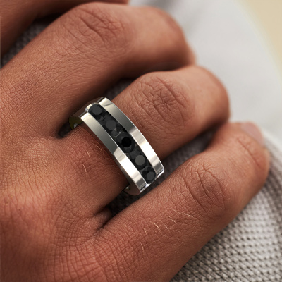 Are you looking for a exclusive platinum men's ring that is slightly different? Then our heavy platinum black diamond set Richard men's ring is the perfect ring for you! This ring, as shown here, is made of platinum but feel free to customize to your liking. Show them what you are all about with this platinum black diamonds Richard men's ring, a ring for ambitious men. How do you like this exclusive platinum men's ring? Simply customize this Richard men's ring, using our online tool. Subsequently, your personal luxury Richard men's ring will be made by hand by our goldsmiths. Precious metals and gemstones can be customized to your liking. Do you have specific preferences which are unavailable in our online tool? Please feel free to contact us. We will customize your personal exclusive men's ring to your liking.Our team of talented, passionate designers add new ring designs to our online collection daily. Our objective in doing so, is to be able to offer you a wide variety of jewels. Please feel free to request a quote if you have specific wishes for your ring. We guarantee to make you an offer you can't refuse.After receiving your order, our goldsmiths will start the creative process of making your Richard ring. We don't keep stock. This is advantageous because these costs will not be passed on to you. Therefore, we can offer jewellery at exceptionally low prices.To make it easier for you, we offer a 30 day return policy. Check our terms and conditions.