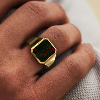 The rectangular Lars 2 signet ring with octagon bloodstone stone top, as shown above, is filled with tradition. Customary, the signet ring was passed down from father to son. Start your own tradition with this rectangular gold signet ring. We are also more than happy to engrave your ring with a monogram or family crest. Please check our database for further inquiries and options. You can find the departments of our education centre at the bottom of this page. Start a new tradition with the traditional gold Lars 2 signet ring. The affordable Lars 2 signet ring, as shown here, can be customized to your liking. Our online tool offers many different options but please feel free to contact us if you want changes made to your Lars 2 signet ring, which are unavailable in our online tool.Our team of talented, passionate designers add new ring designs to our online collection daily. Our objective in doing so, is to be able to offer you a wide variety of jewels. Please feel free to request a quote if you have specific wishes for your ring. We guarantee to make you an offer you can't refuse.By using our modern techniques, we can design and customize the finest quality jewels with the utmost care for you. Our rings are always priced 30 percent lower than other jewellers. We make rings to order, so we don't have to maintain a large stock. If you have a certain budget, we are more than happy to advice you accordingly.To make it easier for you, we offer a 30 day return policy. Check our terms and conditions.
