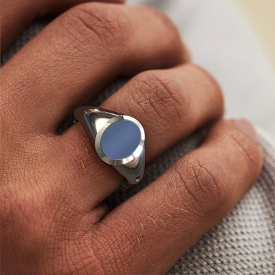 The solid Herman 1 pinky ring with oval shape blue sardonyx stone top, as shown above, is filled with tradition. Customary, the pinky ring was passed down from father to son. Start your own tradition with this solid white gold pinky ring. We are also more than happy to engrave your ring with a monogram or family crest. Please check our database for further inquiries and options. You can find the departments of our education centre at the bottom of this page. Start a new tradition with the traditional white gold Herman 1 pinky ring. As soon as you finished designing your Herman 1 signet ring with our online tool, our goldsmiths will start their creative process of making your ring. This will be done with passion and care, according ancient crafting. On top of that, our jewels are made of eco-friendly materials. Simply customize online with our online tool, if you want any changes made. If you want specific changes made to your Herman 1 signet ring, that are unavailable in our online tool, please feel free to contact our expert designers.