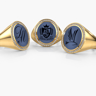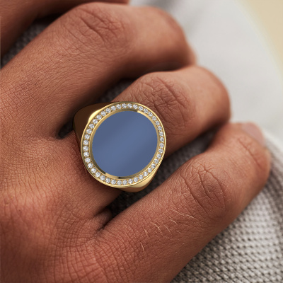 The oval Adam 5 signet ring with oval shape blue sardonyx stone top, as shown above, is filled with tradition. Customary, the signet ring was passed down from father to son. Start your own tradition with this oval gold signet ring. We are also more than happy to engrave your ring with a monogram or family crest. Please check our database for further inquiries and options. You can find the departments of our education centre at the bottom of this page. Start a new tradition with the exclusive gold Adam 5 signet ring. The diamonds Adam 5 signet ring, as shown here, can be customized to your liking. Our online tool offers many different options but please feel free to contact us if you want changes made to your Adam 5 signet ring, which are unavailable in our online tool.Our talented designers add new designs to our online collection daily. Together they create a diverse collection of the finest jewellery. If you prefer to make a ring according your own design, please feel free to request a quote. We will make you an amazing offer, based on quality and price.After receiving your order, our goldsmiths will start the creative process of making your Adam 5 ring. We don't keep stock. This is advantageous because these costs will not be passed on to you. Therefore, we can offer jewellery at exceptionally low prices.To make it easier for you, we offer a 30 day return policy. Check our terms and conditions.
