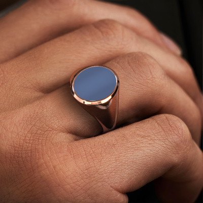 The solid Herman 3 light signet ring with oval shape blue sardonyx stone top, as shown above, is filled with tradition. Customary, the signet ring was passed down from father to son. Start your own tradition with this solid rose gold signet ring. We are also more than happy to engrave your ring with a monogram or family crest. Please check our database for further inquiries and options. You can find the departments of our education centre at the bottom of this page. Start a new tradition with the classic rose gold Herman 3 light signet ring. As soon as you finished designing your Herman 3 light signet ring with our online tool, our goldsmiths will start their creative process of making your ring. This will be done with passion and care, according ancient crafting. On top of that, our jewels are made of eco-friendly materials. Simply customize online with our online tool, if you want any changes made. If you want specific changes made to your Herman 3 light signet ring, that are unavailable in our online tool, please feel free to contact our expert designers.Our team of talented, passionate designers add new ring designs to our online collection daily. Our objective in doing so, is to be able to offer you a wide variety of jewels. Please feel free to request a quote if you have specific wishes for your ring. We guarantee to make you an offer you can't refuse.By using our modern techniques, we can design and customize the finest quality jewels with the utmost care for you. Our rings are always priced 30 percent lower than other jewellers. We make rings to order, so we don't have to maintain a large stock. If you have a certain budget, we are more than happy to advice you accordingly.To make it easier for you, we offer a 30 day return policy. Check our terms and conditions.