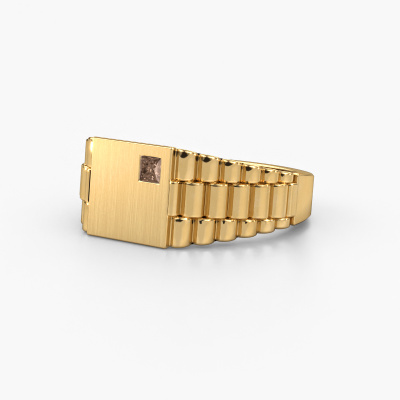 Everyone knows the design of this well-known watch brand. With two colours of gold links, this solid 14 Carat gold Pelle men's ring, is perfectly suited for trendy, successful men. A man who wants to dress to impress with a striking men's ring with 0.17 crt brown diamond. Show them what you are made of!The best part of this royal men's ring is that you can customize it to your own liking. Your style, your choice, your men's ring. On top of that, your luxury gold men's ring will be made by hand with eco-friendly materials! Please feel free to easily customize the ring, using our online tool. Of course, you can always contact us. We will gladly help you compiling your luxury men's ring. Is there a design you like, but you would like to customize it with a gemstone we do not offer on our website, then please contact us. We're happy to tell you about the possibilities.Our team of talented, passionate designers add new ring designs to our online collection daily. Our objective in doing so, is to be able to offer you a wide variety of jewels. Please feel free to request a quote if you have specific wishes for your ring. We guarantee to make you an offer you can't refuse.After receiving your order, our goldsmiths will start the creative process of making your Pelle ring. We don't keep stock. This is advantageous because these costs will not be passed on to you. Therefore, we can offer jewellery at exceptionally low prices.To make it easier for you, we offer a 30 day return policy. Check our terms and conditions.