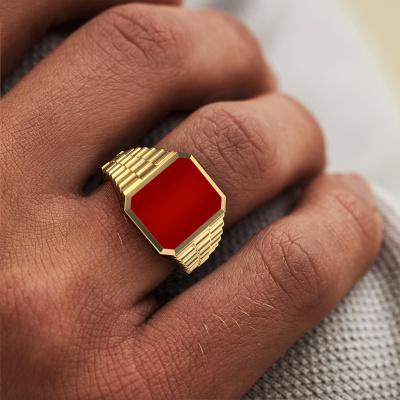 Everyone knows the design of this well-known watch brand. With two colours of gold links, this flat 14 Carat gold Brent 2 signet ring, is perfectly suited for trendy, successful men. A man who wants to dress to impress with a striking signet ring with 12x10 mm carnelian. Show them what you are made of!Customize your own special Brent 2 signet ring, which will then be created by our goldsmiths with great passion. Do you prefer a different option than is shown here in the gold Brent 2 signet ring? Then our online tools offers various options. Feel free to ask us for help if you are unable to succeed. We are happy to answer your questions!
