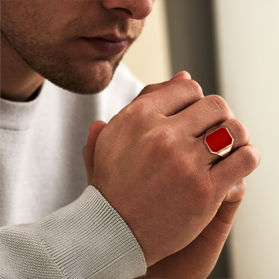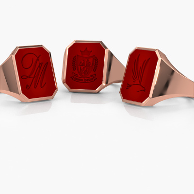 The solid Lars 5 signet ring with octagon carnelian stone top, as shown above, is filled with tradition. Customary, the signet ring was passed down from father to son. Start your own tradition with this solid rose gold signet ring. We are also more than happy to engrave your ring with a monogram or family crest. Please check our database for further inquiries and options. You can find the departments of our education centre at the bottom of this page. Start a new tradition with the chic rose gold Lars 5 signet ring. The luxury Lars 5 signet ring, as shown here, can be customized to your liking. Our online tool offers many different options but please feel free to contact us if you want changes made to your Lars 5 signet ring, which are unavailable in our online tool.New jewellery designs are added to our online collection daily. Our team of passionate designers strive to create extraordinary and diverse designs. Have you seen a ring you like? Please feel free to contact us. Based on a good price/ quality ratio, we will make you an offer you can't refuse!Because we design and deliver our own rings, we can offer you a ring at a price you won't find anywhere else. A ring is made to order, which helps prevent excess supplies, so we can make you a great price offer. We understand it feels risky, buying your ring online, but we will gladly assist in the designing process, taking your budget into consideration.To make it easier for you, we offer a 30 day return policy. Check our terms and conditions.