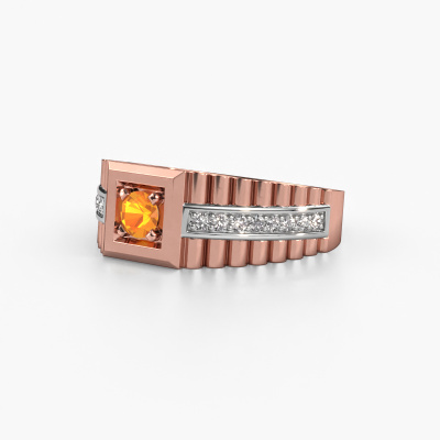 Everyone knows the design of this well-known watch brand. With two colours of rose gold links, this wide 14 Carat rose gold Maikel men's ring, is perfectly suited for trendy, successful men. A man who wants to dress to impress with a striking men's ring with 4.2 mm citrin. Show them what you are made of!Our goldsmiths passionately create your customized men's ring to your liking with the utmost care. The rose gold men's ring, as shown here, can be customized using our online tool. Feel free to ask our jewel designers for assistance if you want changes made which are unavailable in our online tool. We are happy to answer your questions.