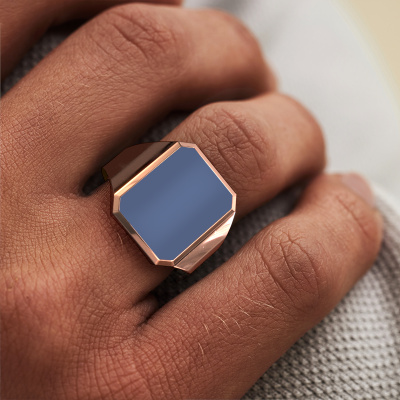 The solid Lars 4 light signet ring with octagon blue sardonyx stone top, as shown above, is filled with tradition. Customary, the signet ring was passed down from father to son. Start your own tradition with this solid rose gold signet ring. We are also more than happy to engrave your ring with a monogram or family crest. Please check our database for further inquiries and options. You can find the departments of our education centre at the bottom of this page. Start a new tradition with the classic rose gold Lars 4 light signet ring. Our goldsmiths passionately create your customized signet ring to your liking with the utmost care. The rose gold signet ring, as shown here, can be customized using our online tool. Feel free to ask our jewel designers for assistance if you want changes made which are unavailable in our online tool. We are happy to answer your questions.Our team of talented, passionate designers add new ring designs to our online collection daily. Our objective in doing so, is to be able to offer you a wide variety of jewels. Please feel free to request a quote if you have specific wishes for your ring. We guarantee to make you an offer you can't refuse.Are you on a budget? Please feel free to contact us, so we can go discuss your options. We offer our rings at guaranteed best price, because we make them to order. You won't find such a price anywhere else!To make it easier for you, we offer a 30 day return policy. Check our terms and conditions.