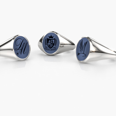 The heavy Herman 2 signet ring with oval shape blue sardonyx stone top, as shown above, is filled with tradition. Customary, the signet ring was passed down from father to son. Start your own tradition with this heavy white gold signet ring. We are also more than happy to engrave your ring with a monogram or family crest. Please check our database for further inquiries and options. You can find the departments of our education centre at the bottom of this page. Start a new tradition with the classic white gold Herman 2 signet ring. Our goldsmiths passionately create your customized signet ring to your liking with the utmost care. The white gold signet ring, as shown here, can be customized using our online tool. Feel free to ask our jewel designers for assistance if you want changes made which are unavailable in our online tool. We are happy to answer your questions.Our team of talented, passionate designers add new ring designs to our online collection daily. Our objective in doing so, is to be able to offer you a wide variety of jewels. Please feel free to request a quote if you have specific wishes for your ring. We guarantee to make you an offer you can't refuse.Are you on a budget? Please feel free to contact us, so we can go discuss your options. We offer our rings at guaranteed best price, because we make them to order. You won't find such a price anywhere else!To make it easier for you, we offer a 30 day return policy. Check our terms and conditions.