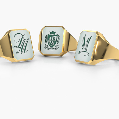 The solid Lars 4 signet ring with octagon green sardonyx stone top, as shown above, is filled with tradition. Customary, the signet ring was passed down from father to son. Start your own tradition with this solid gold signet ring. We are also more than happy to engrave your ring with a monogram or family crest. Please check our database for further inquiries and options. You can find the departments of our education centre at the bottom of this page. Start a new tradition with the classic gold Lars 4 signet ring. Our goldsmiths passionately create your customized signet ring to your liking with the utmost care. The gold signet ring, as shown here, can be customized using our online tool. Feel free to ask our jewel designers for assistance if you want changes made which are unavailable in our online tool. We are happy to answer your questions.Our team of talented, passionate designers add new ring designs to our online collection daily. Our objective in doing so, is to be able to offer you a wide variety of jewels. Please feel free to request a quote if you have specific wishes for your ring. We guarantee to make you an offer you can't refuse.Are you on a budget? Please feel free to contact us, so we can go discuss your options. We offer our rings at guaranteed best price, because we make them to order. You won't find such a price anywhere else!To make it easier for you, we offer a 30 day return policy. Check our terms and conditions.