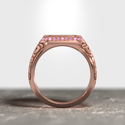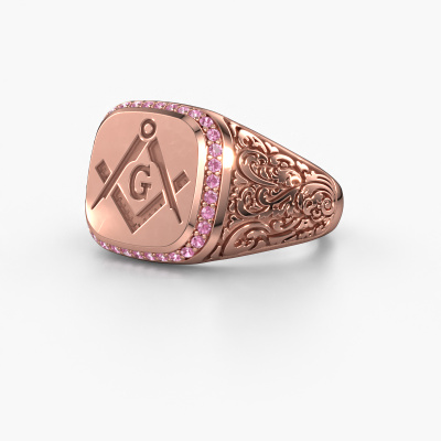 Dress to impress with this heavy Johan 2 men's ring, because with the right ring you make a strong personal statement. This Johan 2 masonic men's ring is shown in 14 Carat rose gold. If this doesn't suit your style, feel free to customize the precious metal to your liking. After all, you want a men's ring that matches your style. A ring that truly suits you. One saying: This is who I am!Our goldsmiths passionately create your customized signet ring to your liking with the utmost care. The rose gold signet ring, as shown here, can be customized using our online tool. Feel free to ask our jewel designers for assistance if you want changes made which are unavailable in our online tool. We are happy to answer your questions.Our team of talented, passionate designers add new ring designs to our online collection daily. Our objective in doing so, is to be able to offer you a wide variety of jewels. Please feel free to request a quote if you have specific wishes for your ring. We guarantee to make you an offer you can't refuse.By using a combination of the latest modern techniques, combined with ancient crafting, we can make all our rings in our own studio. Each jewel is made to order. This is advantageous because we can offer you a price you won't find anywhere else.To make it easier for you, we offer a 30 day return policy. Check our terms and conditions.