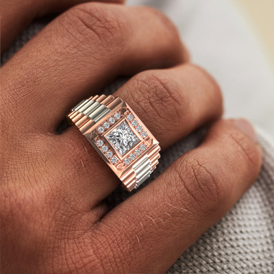 Everyone knows the design of this well-known watch brand. With two colours of rose gold links, this solid 14 Carat rose gold Zilan men's ring, is perfectly suited for trendy, successful men. A man who wants to dress to impress with a striking men's ring with 1.192 crt diamond. Show them what you are made of!Customize your own special Zilan men's ring, which will then be created by our goldsmiths with great passion. Do you prefer a different option than is shown here in the rose gold Zilan men's ring? Then our online tools offers various options. Feel free to ask us for help if you are unable to succeed. We are happy to answer your questions!Our team of talented, passionate designers add new ring designs to our online collection daily. Our objective in doing so, is to be able to offer you a wide variety of jewels. Please feel free to request a quote if you have specific wishes for your ring. We guarantee to make you an offer you can't refuse.After receiving your order, our goldsmiths will start the creative process of making your Zilan ring. We don't keep stock. This is advantageous because these costs will not be passed on to you. Therefore, we can offer jewellery at exceptionally low prices.To make it easier for you, we offer a 30 day return policy. Check our terms and conditions.