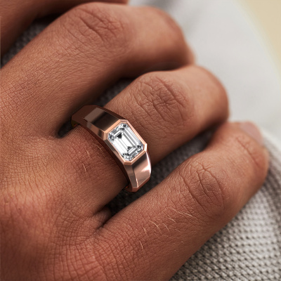 Are you looking for a exclusive rose gold men's ring that is slightly different? Then our rectangular rose gold diamond set Dylan 1 men's ring is the perfect ring for you! This ring, as shown here, is made of rose gold but feel free to customize to your liking. Show them what you are all about with this rose gold diamonds Dylan 1 men's ring, a ring for ambitious men. Our goldsmiths passionately create your customized men's ring to your liking with the utmost care. The rose gold men's ring, as shown here, can be customized using our online tool. Feel free to ask our jewel designers for assistance if you want changes made which are unavailable in our online tool. We are happy to answer your questions.Our team of talented, passionate designers add new ring designs to our online collection daily. Our objective in doing so, is to be able to offer you a wide variety of jewels. Please feel free to request a quote if you have specific wishes for your ring. We guarantee to make you an offer you can't refuse.By using a combination of the latest modern techniques, combined with ancient crafting, we can make all our rings in our own studio. Each jewel is made to order. This is advantageous because we can offer you a price you won't find anywhere else.To make it easier for you, we offer a 30 day return policy. Check our terms and conditions.
