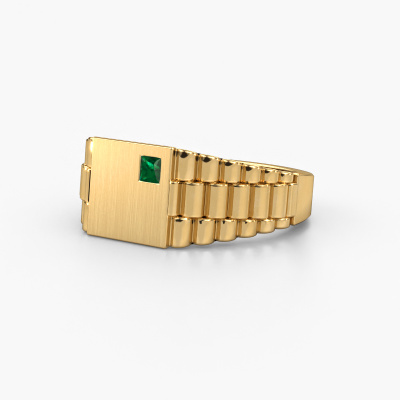 Everyone knows the design of this well-known watch brand. With two colours of gold links, this solid 14 Carat gold Pelle men's ring, is perfectly suited for trendy, successful men. A man who wants to dress to impress with a striking men's ring with 3 mm emerald. Show them what you are made of!The best part of this royal men's ring is that you can customize it to your own liking. Your style, your choice, your men's ring. On top of that, your luxury gold men's ring will be made by hand with eco-friendly materials! Please feel free to easily customize the ring, using our online tool. Of course, you can always contact us. We will gladly help you compiling your luxury men's ring. Is there a design you like, but you would like to customize it with a gemstone we do not offer on our website, then please contact us. We're happy to tell you about the possibilities.Our team of talented, passionate designers add new ring designs to our online collection daily. Our objective in doing so, is to be able to offer you a wide variety of jewels. Please feel free to request a quote if you have specific wishes for your ring. We guarantee to make you an offer you can't refuse.After receiving your order, our goldsmiths will start the creative process of making your Pelle ring. We don't keep stock. This is advantageous because these costs will not be passed on to you. Therefore, we can offer jewellery at exceptionally low prices.To make it easier for you, we offer a 30 day return policy. Check our terms and conditions.